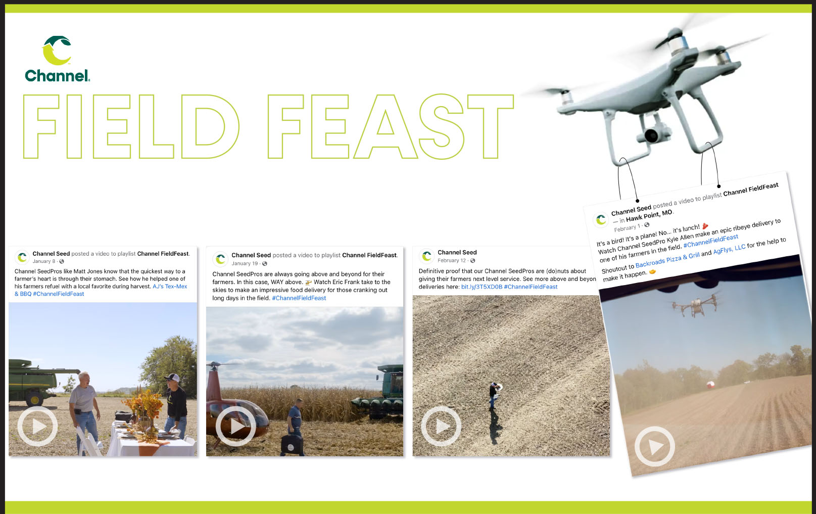 The solution was FieldFeast: SeedPros surprised Channel farmers by personally fetching meals from local food joints and delivering them to the fields using over-the-top methods, such as drone deliveries or helicopter drops.